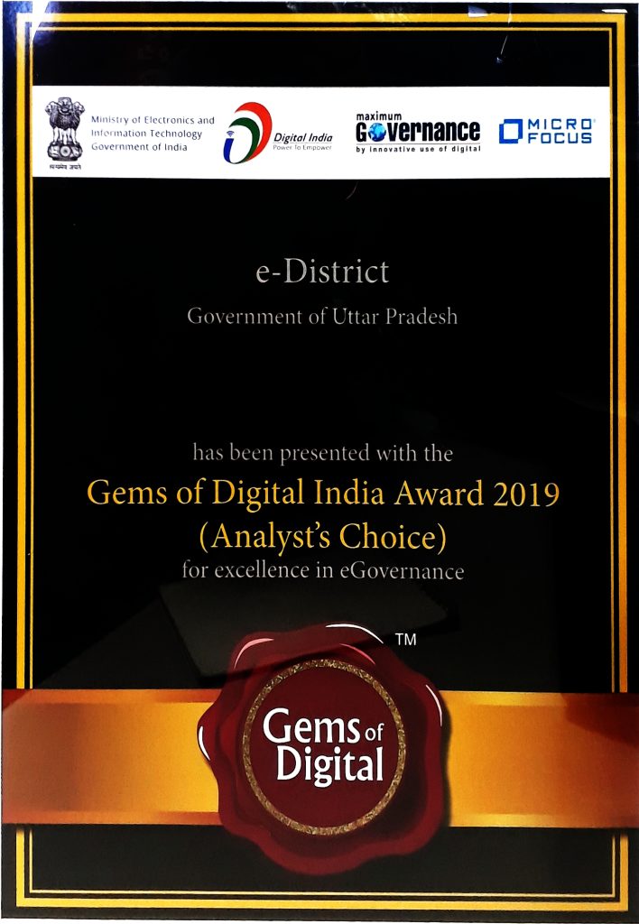डिजिटल इंडिया के रत्न पुरस्कार - ईडिस्ट्रिक्ट 2019 / Gems of Digital India Award - eDistrict 2019
