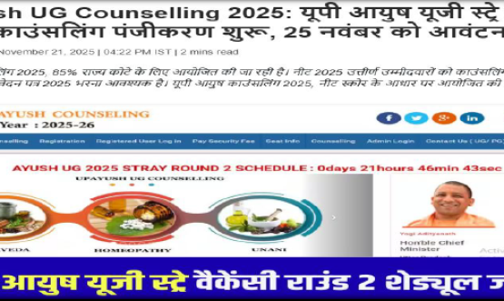उत्तर प्रदेश में आयुष स्नातक एवं स्नातकोत्तर पाठ्यक्रमों के लिए आयोजित UG एवं PG काउंसलिंग प्रक्रिया सफलतापूर्वक सम्पन्न की गई। यह राज्य में आयुष शिक्षा के क्षेत्र में प्रवेश प्रक्रिया का एक महत्वपूर्ण चरण रहा।…